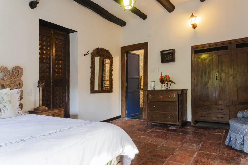 Colonial room at Hacienda Coloma. Enjoy the hacienda’s beautiful scenery. Includes breakfast and a coffee tour.
