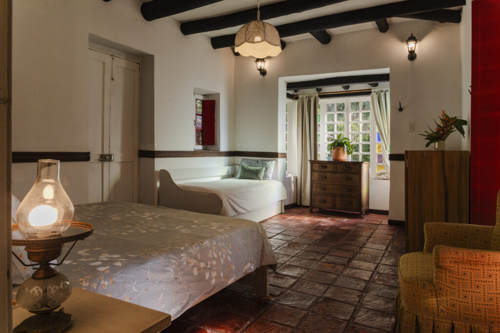 Habitación colonial en la Hacienda Coloma. Disfruta de los hermosos paisajes de la hacienda. Incluye Desayuno + Tour del Café.